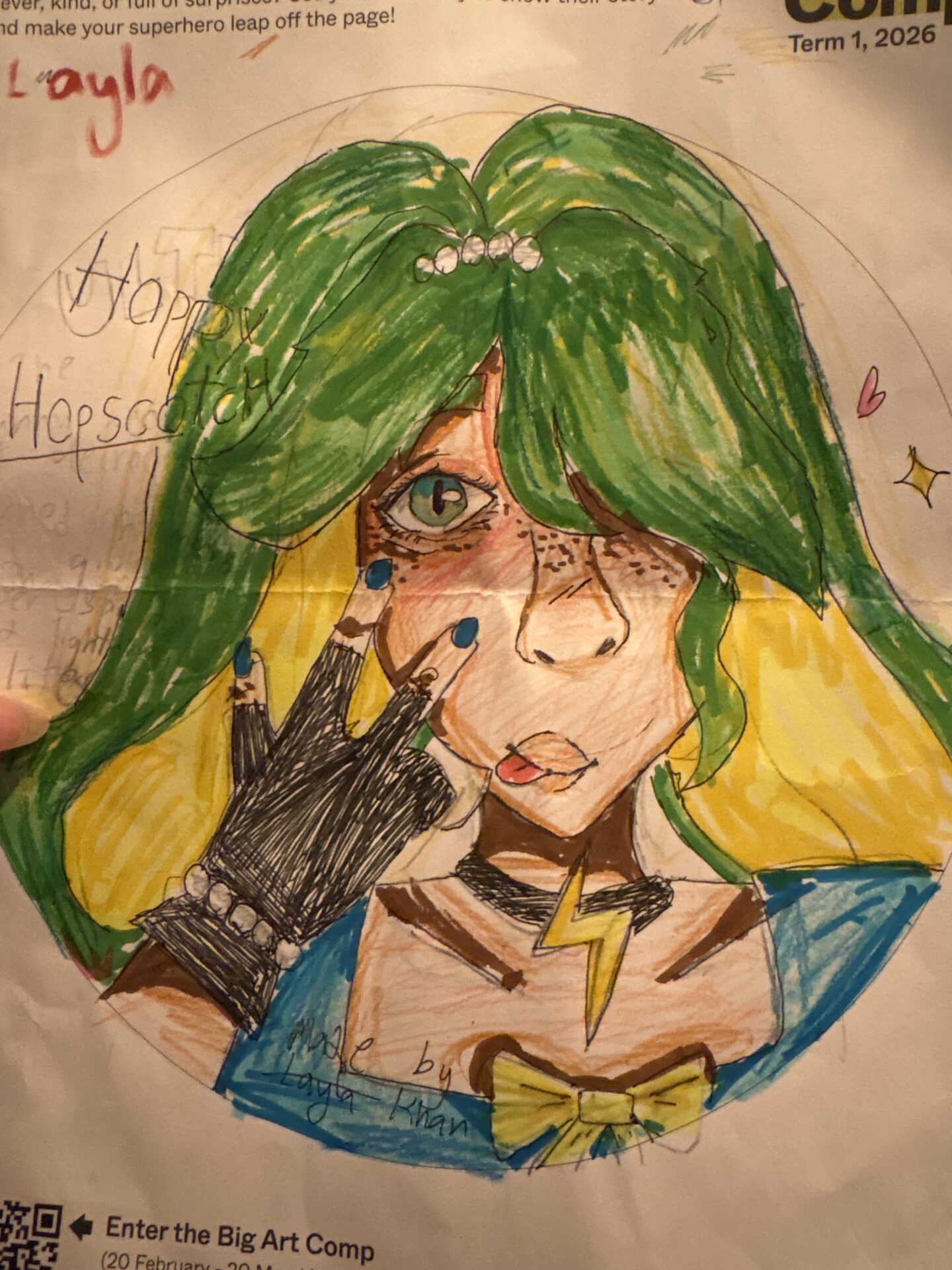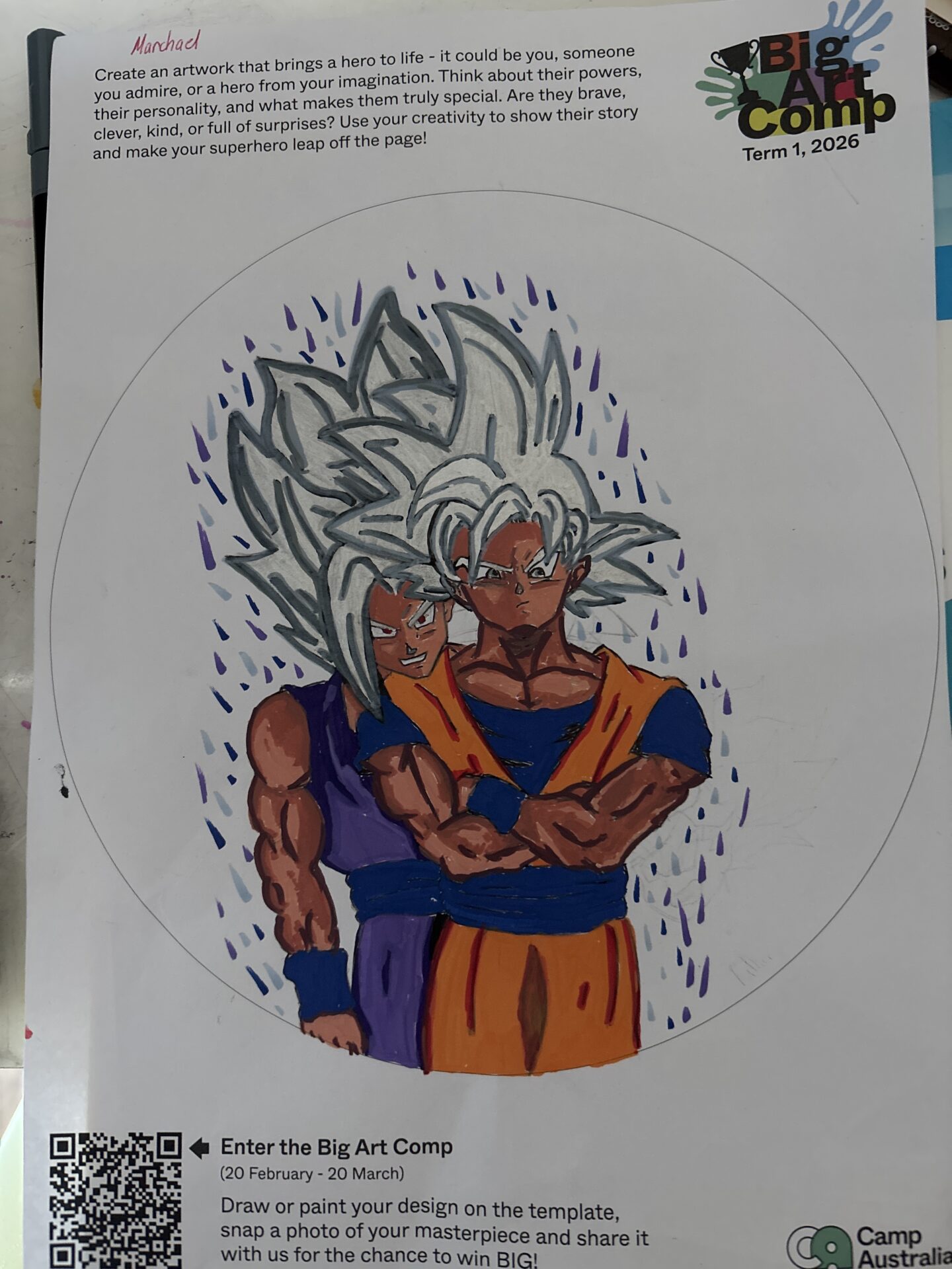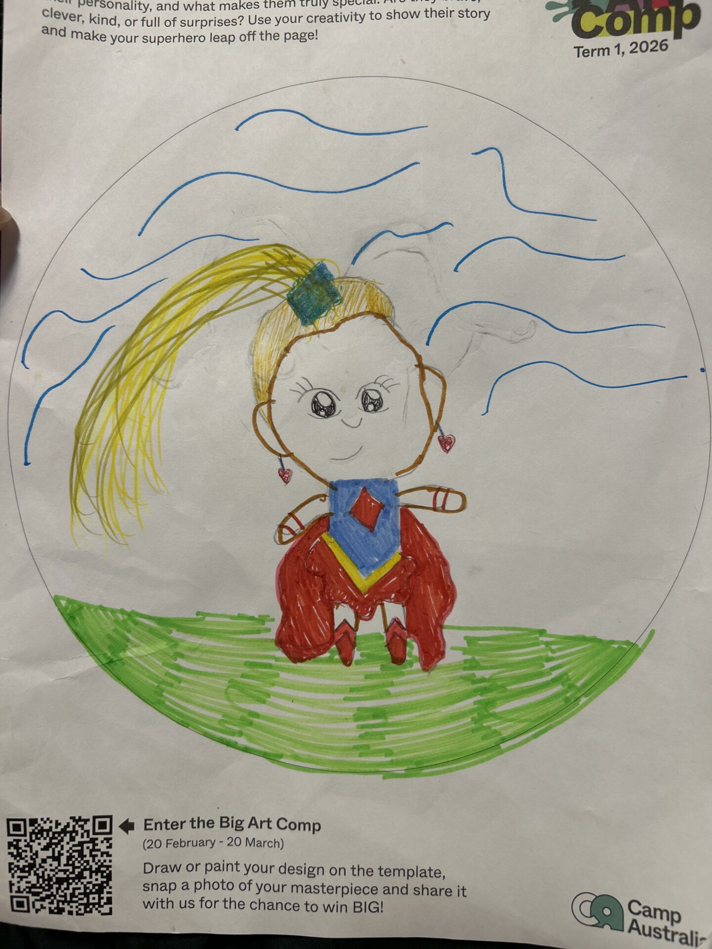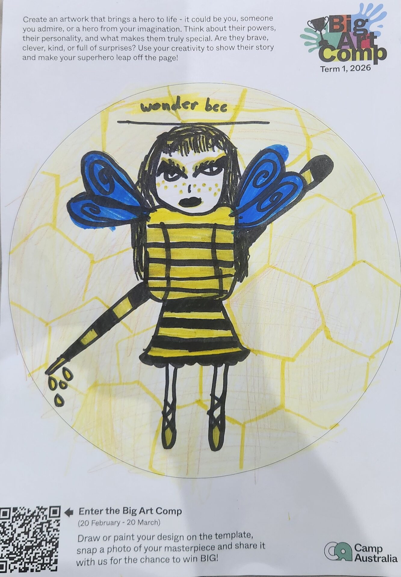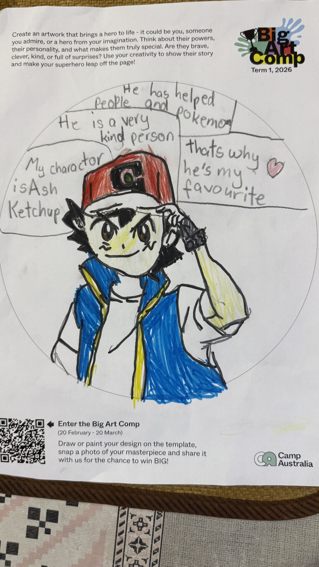 A huge thank you to all the incredible young artists who took part in our Term 1 Big Art Comp. Your superhero creations were full of imagination, energy and bold ideas – and we loved seeing what being a hero means to you.